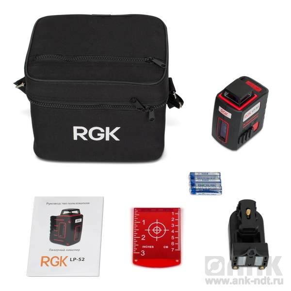 Работу лазерного уровня RGK LP-52 обеспечивают три батареи типа АА на 1.5 В. При снижении уровня заряда аккумулятора прибор оповестит вас звуковым сигналом.